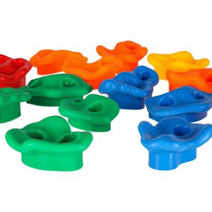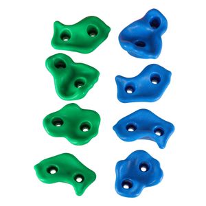 Zestaw 20 kamieni wspinaczkowych z tworzywa PE, odpornych na warunki atmosferyczne. Różne kolory i kształty. W zestawie śruby, nakrętki, podkładki i imbus. Do montażu na drewnie, betonie. Dla dzieci 6+, waga zestawu ok. 2,45 kg.