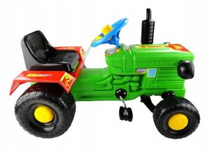 Mix kolorówMożliwość dokupienia przyczepy do traktora kod - 543270Traktorek wykonany z najlepszych jakościowo, atestowanych materiałów.Wyposażony został w napęd łańcuchowy, ruchomy układ kierowniczy, klakson, komin oraz hak na przyczepę. Łatwo się prowadzi i jest stabilny na drodze. Obciążenie: max 50 kgWymiary produktu: Długość: ok.78 cm, Szerokość: ok.47 cm, Wysokość: ok.51 cm, Wysokość siedziska: ok.31 cm