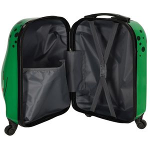 Walizka podróżna dla dzieci. Urocza grafika krokodyla przykuje uwagę każdego malucha. Wyposażona w cztery kółka i rączkę teleskopową. Wnętrze wyłożone jest podszewką. Zamykana na zamek błyskawiczny. Kolor: zielony. Wymiary: 31 cm x 46 cm x 26 cm.