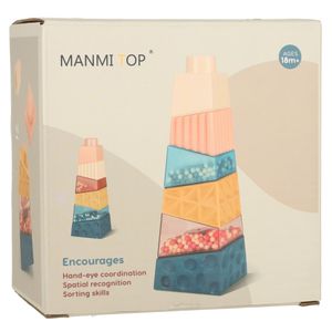 Edukacyjne klocki z różnymi sensorycznymi elementami, które można układać w dowolny sposób tworząc wieżę. Zabawka zapewnia mnóstwo frajdy, a przy tym jest doskonałym treningiem zdolności manualnych. Tworzywo: plastik. Przykładowa wieża: 8x8x14,5cm.