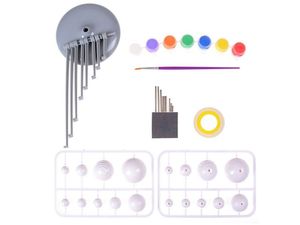 Stwórz własny układ słoneczny, zostań małym astronomem jednocześnie ucząc się z ilu planet stworzony jest nasz układ słoneczny oraz jak działa.Planetarium jest edukacyjną i kreatywną zabawka do samodzielnego złożenia. Do złożenia układu słonecznego nie potrzeba kleju. Na wyposażeniu zestawu są specjalne farby do pomalowania planet i jedna którą możemy podkreślić niektóre elementy na planetach aby dawały efekt świecenia w ciemności.W skład zestawu wchodzą:- komplet planet Układu Słonecznego (do złożenia bez użycia kleju)- stojak składający się ze stojaka i obracających się planet- 9 stalowych pręcików- farbki w tym jedna nadająca efekt świecenia w ciemności- pędzel- papier ścierny- szablon pierścieni SaturnaWymiary:Rozpiętość układu około 30 cmWysokość około 15 cmWymiary planet od 1,5 cm do 4 cmKomplet pozwala rozwijać zdolności manualne, kreatywność i wyobraźnię. Dzieci uwielbiają kreatywne zabawki, dlatego ten zestaw świetnie nada się dla młodego astronoma.Zestaw zapakowany w efektowne opakowanie idealnie nadające się na prezent.